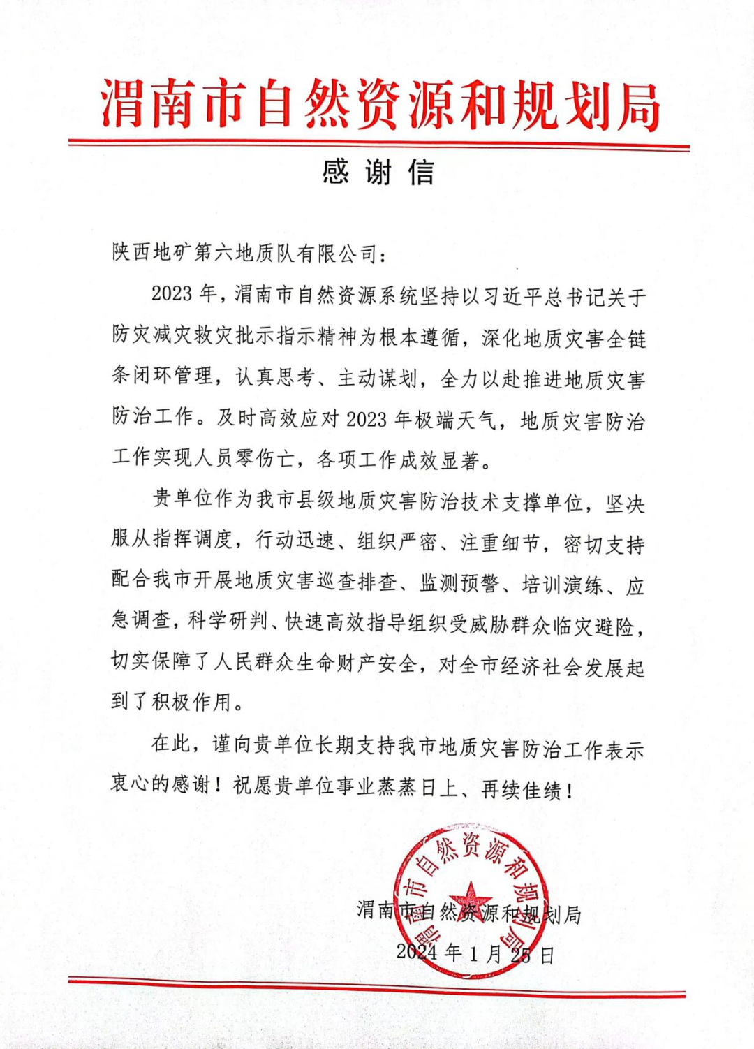 渭南支隊成功中標渭南市應急管理局技術支撐項目 我公司地環所承攬白水縣煤礦區域隱蔽致災普查項目 陜西地礦六隊地環所中標潼關縣2024年國債項目地質災害治理工程勘查設計項目